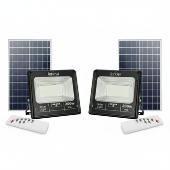 Set 2 x Proiector LED INNOVA 200W Cu Panou Solar si telecomanda, IP66 + Cadou Surpriza